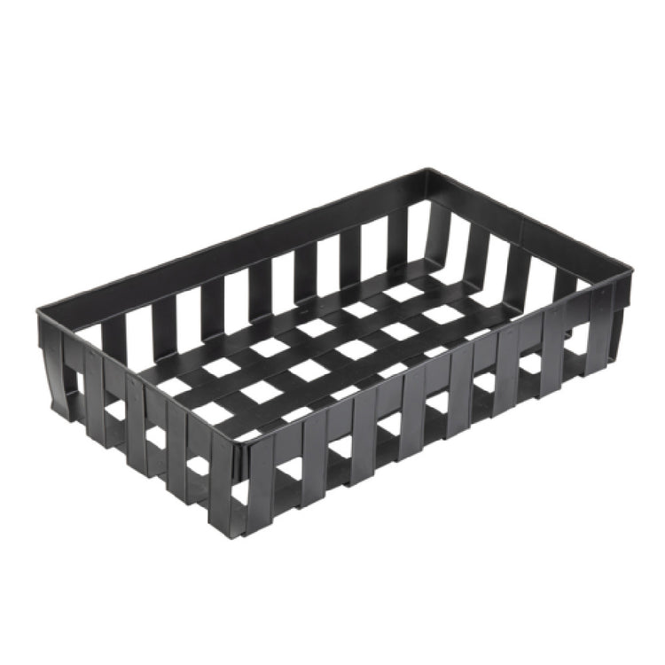 The Tablecraft 11696 Forge Collection Basket is a sophisticated choice for commercial display needs, with dimensions of 20-3/4"W x 12-3/4"D x 4-3/8"H, offering ample space for showcasing a variety of items. Constructed from high-quality galvanized steel, this basket features a robust design that can withstand the demands of busy environments while maintaining an elegant appearance with its black finish. Its rectangular shape is ideal for organizing and displaying products in a visually appealing manner. The full-size form factor of the basket allows it to fit seamlessly onto Grab & Go Displays, making it a versatile addition to any retail or food service setting. Perfect for markets ranging from hospitality to retail, the Tablecraft 11696 combines durability with aesthetic appeal, ensuring it meets the multifaceted needs of different industry segments. Whether used to present baked goods, packaged snacks, or retail items, this basket is engineered to enhance product visibility while maintaining an organized and professional display. Its design not only supports functional utility but also adds an element of modern style to any setting, making it an essential tool for businesses aiming to optimize their display potential.
