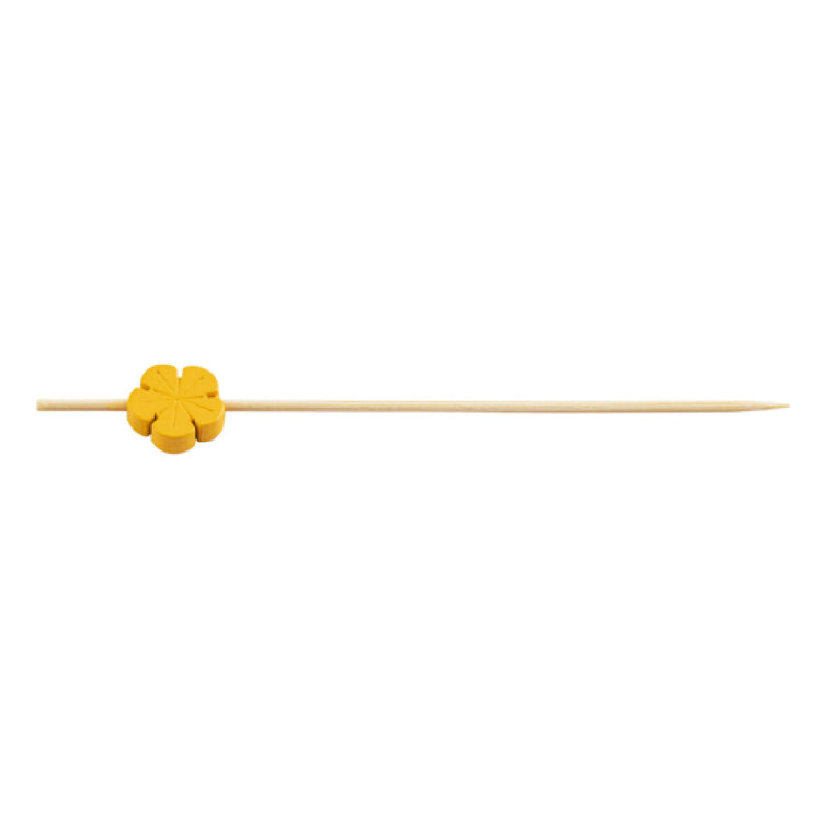 The Tablecraft 11761 Decorative Picks Flower, sized at 5/8" x 1/4" x 4-1/2", are crafted from natural bamboo and are available in a pack of 100. These picks bring a touch of elegance and functionality to any food presentation, serving as an excellent choice for caterers, event organizers, and culinary professionals who seek to enhance their food displays with a natural aesthetic. The flower design adds a charming detail, making them suitable for a wide range of settings, from upscale events to casual gatherings. Their dimensions ensure that they are versatile enough for various applications, such as garnishing cocktails, securing appetizers, and adding flair to desserts. The requirement to purchase in multiples of 12 packs makes them an ideal option for large-scale events or businesses looking to maintain a consistent supply. Made from bamboo, these decorative picks are not only durable but also environmentally friendly, aligning with the growing demand for sustainable products in the food service industry. The combination of aesthetic appeal, functionality, and sustainability makes the Tablecraft 11761 Decorative Picks a distinct choice for businesses and individuals aiming to elevate their culinary presentations.
