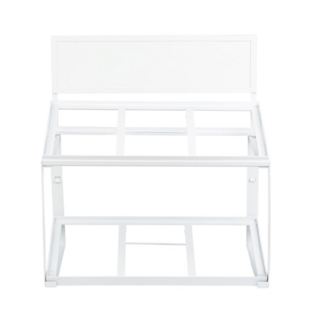 The Tablecraft 11794 Tiered Frame is meticulously crafted with dimensions of 21.5"W x 13.5"D x 22.25"H, providing a practical and space-efficient solution for various display needs. Constructed from durable powder-coated steel, this frame offers resilience and stability, making it an ideal choice for environments that demand robust performance and longevity. The design is specifically tailored to fit gastronorm wood crates, ensuring compatibility and versatility within professional kitchen settings and catering businesses. With its sleek white finish, the frame not only blends seamlessly into different decor styles but also enhances the visual appeal of any presentation or display setup. The Tablecraft 11794 Tiered Frame is suitable for a range of industry segments, including hospitality, catering, and food service, where efficient use of space and reliable display solutions are crucial. Its adaptable design and quality construction make it a valuable asset for businesses looking to optimize their service and presentation areas.