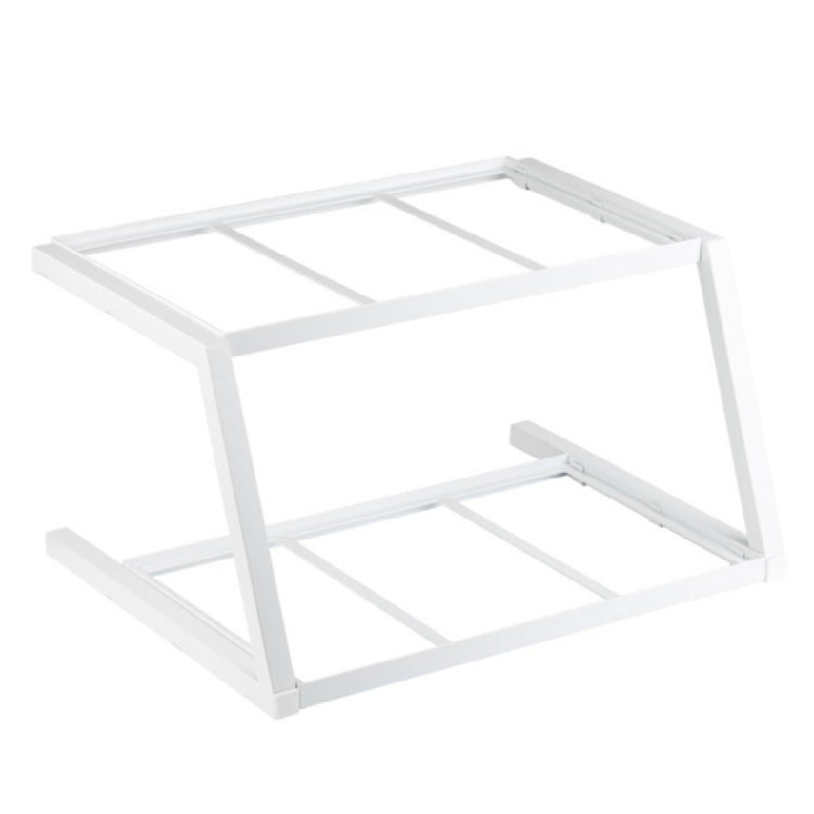 The Tablecraft 11796 Grab & Go Frame is a versatile and well-designed two-tier display solution, measuring 23.5 inches wide, 17.75 inches deep, and 13 inches high. Constructed from durable powder-coated steel, this frame offers both strength and aesthetic appeal, making it a practical choice for various commercial settings. Its sleek white finish provides a clean and modern look, ensuring it complements a wide range of interior designs. Specifically tailored to fit gastronorm half-size wood crates, this frame enables efficient and organized presentation of products, enhancing visibility and accessibility. Ideal for use in hospitality venues, catering services, and retail environments, the Tablecraft 11796 Grab & Go Frame supports diverse market segments by offering a reliable and stylish display option that maximizes space and showcases products effectively. Its robust construction and considered dimensions make it an essential asset for operators seeking to optimize their product display and improve customer interaction. This product's thoughtful engineering ensures it meets the high standards expected in professional environments, delivering both functionality and value through its adaptable design.