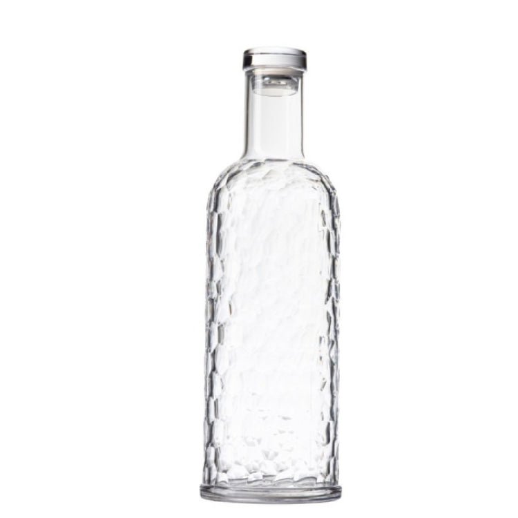 The Tablecraft 11800 Carafe is a meticulously designed vessel with a capacity of 34 oz., making it a versatile choice for a range of settings, from home dining to professional catering environments. With dimensions of 3.5 inches in width and depth and a height of 11.25 inches, this carafe strikes an elegant yet functional balance, suitable for display or service. It features a clear, honeycomb design crafted from styrene-acrylonitrile, a material known for its durability and clarity, ensuring that the carafe is both lightweight and resistant to impact. The included lid serves to maintain the freshness of its contents, making it ideal for storing and serving a variety of beverages. The unique honeycomb pattern not only enhances its aesthetic appeal but also offers a tactile grip, making pouring effortless and spill-free. This carafe is particularly valuable for establishments seeking a blend of style and practicality, ensuring that it complements any table setting while standing up to the rigors of frequent use. Its clear construction allows for easy identification of contents, adding convenience for both servers and guests alike. The Tablecraft 11800 Carafe embodies a perfect blend of form and function, making it an indispensable tool for any beverage service.