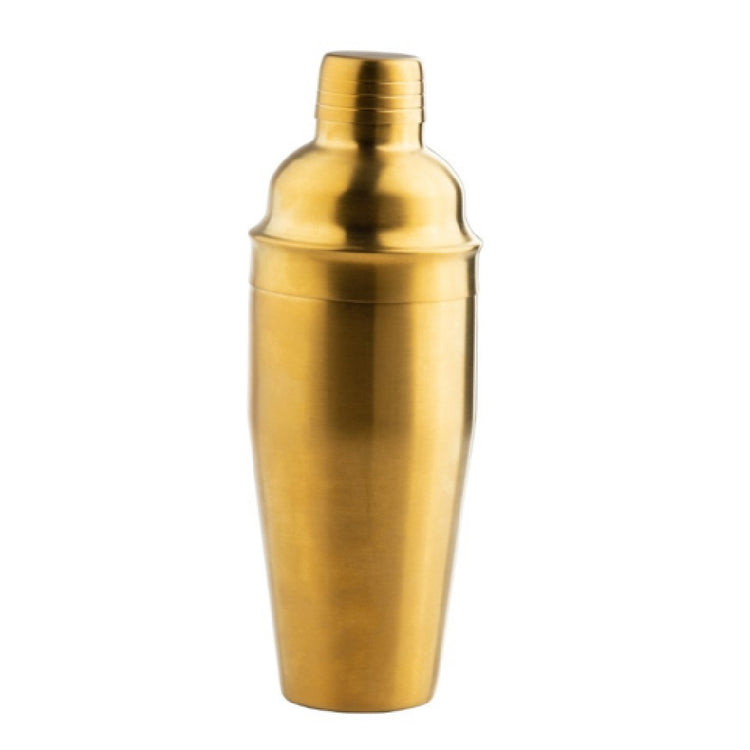 The Tablecraft 11813 Cocktail Shaker is a premium bar tool featuring a generous 24-ounce capacity, making it a must-have for mixologists and cocktail enthusiasts alike. This shaker is meticulously crafted as a three-piece set and measures 3.375 inches in width and depth, with a height of 9.5 inches, perfectly balancing usability with sleek design. Constructed from 18/8 stainless steel, this shaker promises durability and resistance to rust and corrosion, ideal for high-volume use in professional bars or at home. Its striking gold finish not only adds a touch of elegance but also makes it a standout piece in any bar collection. The Tablecraft 11813 is designed to cater to different market segments, including upscale bars seeking reliable and stylish cocktail equipment, at-home bartenders desiring professional-grade tools, and event coordinators looking for sophisticated drink service solutions. With its precise engineering, this cocktail shaker ensures seamless mixing and chilling of beverages, enhancing the overall cocktail-making experience. Whether used in a bustling bar environment or for intimate gatherings, the Tablecraft 11813 Cocktail Shaker impeccably combines form and function, making it a versatile and indispensable addition to any cocktail-making set-up.