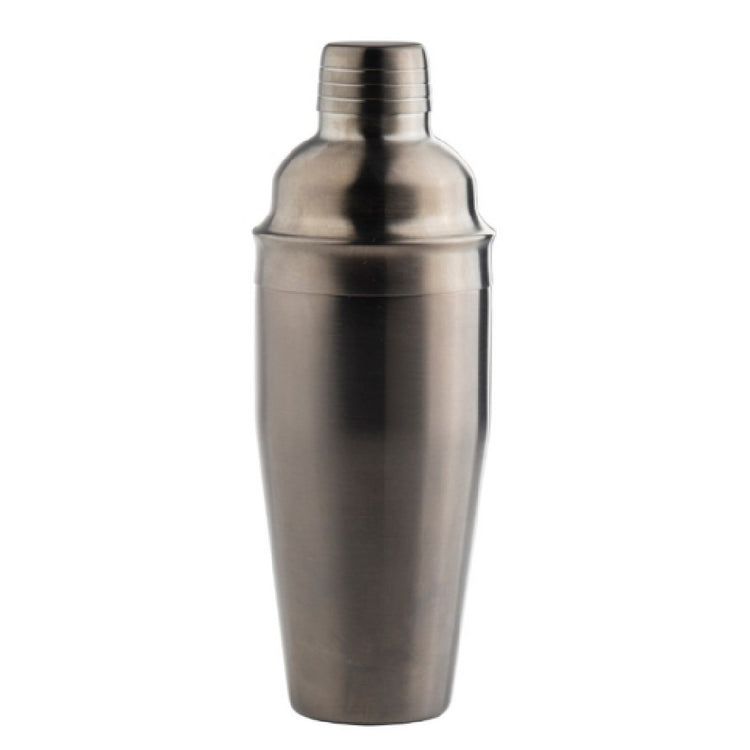 The Tablecraft 11823 Cocktail Shaker is a sleek and practical addition to any bar setting. With a capacity of 24 oz., this three-piece shaker is expertly crafted from 18/8 stainless steel, ensuring durability and a timeless aesthetic appeal. It features dimensions of 3.375"W x 3.375"D x 9.5"H, making it a compact yet efficient tool for mixing a wide array of cocktails. The shaker boasts a stylish gunmetal finish, adding a modern touch to its classic design. Its construction not only provides robust performance but also ensures ease of use and longevity. Ideal for both professional bartenders and home cocktail enthusiasts, the Tablecraft 11823 is designed to cater to various market segments within the hospitality industry, from upscale bars and restaurants to casual home kitchens. Its high-quality materials and thoughtful design make it an essential tool for crafting perfect beverages with precision and style.