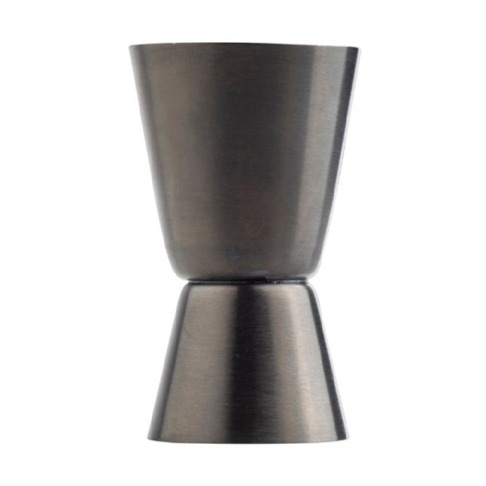 The Tablecraft 11827 Jigger 0.5 Oz. X 1 Oz is a meticulously crafted tool designed for precision and elegance in mixology. This jigger boasts dimensions of 1.5"W x 1.5"D x 2.625"H, making it a compact yet indispensable accessory for professional bartenders and home enthusiasts. Made from high-quality 18/8 stainless steel, it ensures durability and resistance to corrosion, providing a reliable measuring instrument for consistent cocktail preparation. The striking gunmetal finish not only adds a touch of sophistication to your barware collection but also enhances its visual appeal, making it an attractive addition to any setting. This jigger features dual measurement capabilities with 0.5 oz and 1 oz capacities, offering versatility and convenience for crafting a wide range of beverages. Its precise measurements are crucial for achieving the perfect balance of ingredients, thus elevating the quality of cocktails served. Suitable for various segment markets, including upscale bars, restaurants, and home bars, the Tablecraft 11827 Jigger combines functionality with a sleek design, ensuring it meets the demands of both aesthetic and practical needs. Its robust construction and stylish finish make it a valuable asset for those seeking to refine their bartending experience.