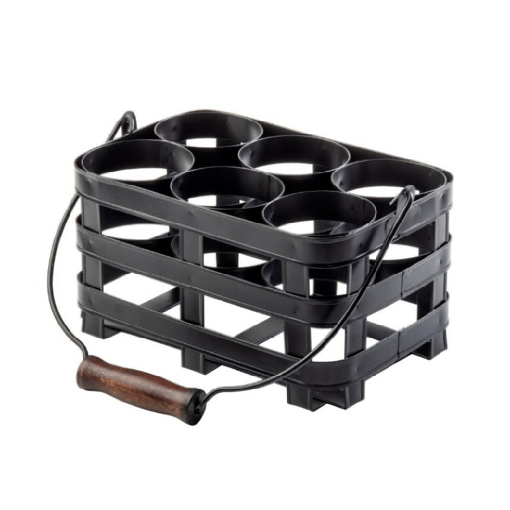 The Tablecraft 11847 Forge Collection Squeeze Bottle Caddy is a precisely designed organizational tool for various culinary environments, measuring 9.875 inches in width, 7 inches in depth, and 6.75 inches in height. This unit is crafted from durable galvanized steel and boasts a sleek black finish, making it a stylish and practical addition to any food service setting. It holds up to six 63 mm bottles, providing ample storage for condiments, sauces, or oils, ensuring they are easily accessible for both front-of-house and back-of-house operations. Ideal for restaurants, catering services, and food trucks, this caddy enhances efficiency by organizing squeeze bottles, reducing clutter and saving space on countertops. The sturdy construction of the Tablecraft 11847 ensures longevity and resistance to wear and tear in high-traffic areas. Its robust build and optimal capacity make it a versatile solution for any establishment looking to streamline condiment service while maintaining a clean and organized workspace. The thoughtfully engineered dimensions and material choice underscore its value as a dependable, high-quality accessory in the culinary industry, perfectly suited for both casual and formal dining settings.