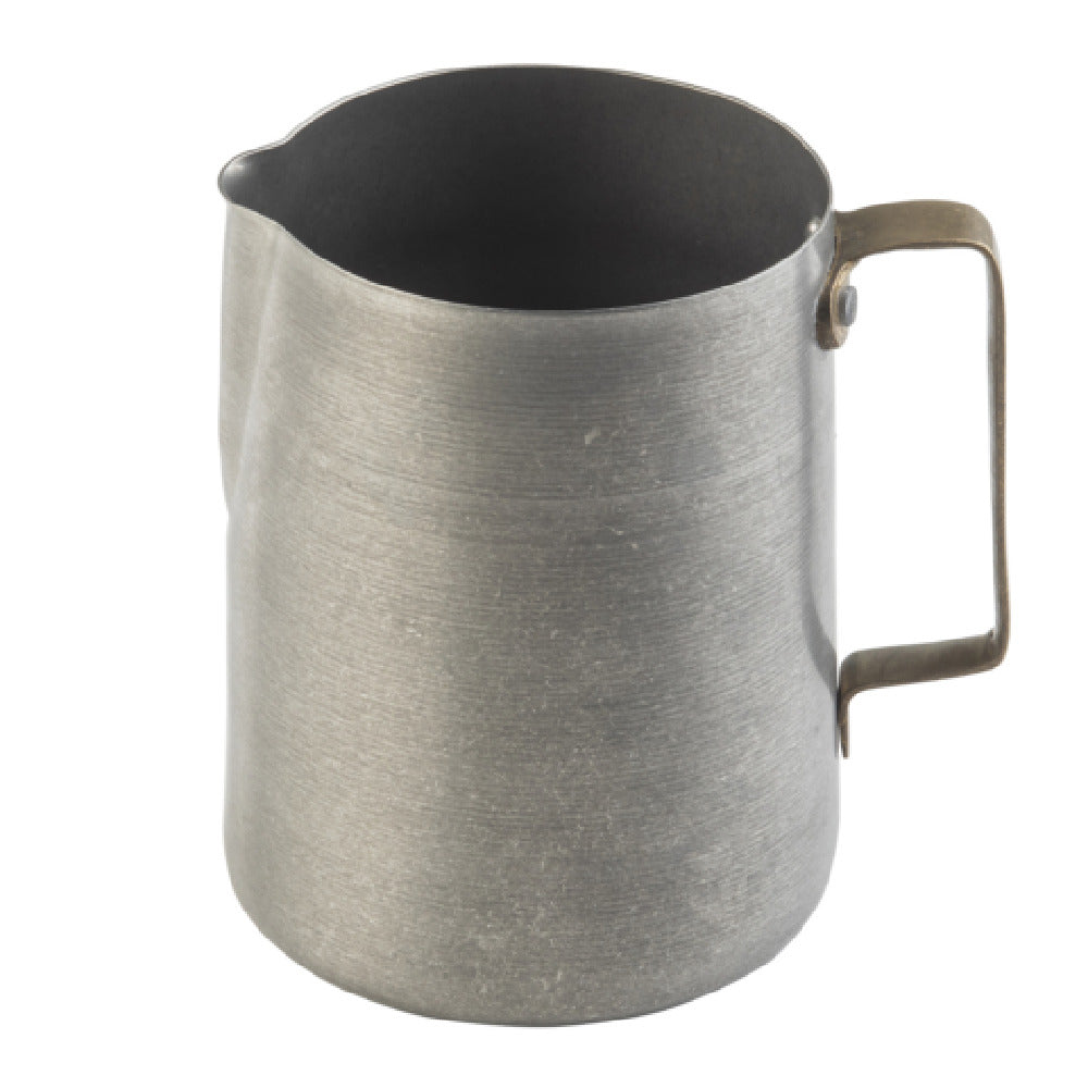 The Tablecraft 12059 Frothing Cup - 36 oz. - 5.5"x4.5"x5.75" is a precision-engineered tool designed for both professional baristas and home coffee enthusiasts who value quality and style in their frothing accessories. Crafted from stainless steel in the 200 Series, this frothing cup is not only robust and durable but also offers superior heat retention, ensuring that your milk froths to the perfect consistency every time. Its vintage finish adds a touch of classic elegance, making it an attractive addition to any kitchen or café setting. The frothing cup is accentuated with a gold PVD finish handle, providing a luxurious aesthetic while ensuring a comfortable grip for precise pouring. With dimensions of 5.5 inches by 4.5 inches by 5.75 inches, the frothing cup has a generous capacity of 36 ounces, making it suitable for creating multiple servings of frothed milk, ideal for bustling cafes or for entertaining guests at home. This combination of functionality and visual appeal positions the Tablecraft 12059 Frothing Cup as a versatile asset in any coffee preparation environment, seamlessly balancing performance with timeless design. Whether for crafting a cappuccino or a latte, this frothing cup is engineered to meet the demands of diverse market segments within the coffee industry.