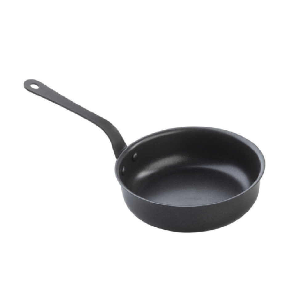 The Tablecraft 12090 Mini Serving Fry Pan is a compact and versatile kitchen accessory, expertly designed to meet the demands of diverse culinary environments. With a capacity of 14 oz., this mini fry pan is ideal for single servings or side dishes, making it a popular choice for restaurants and cafes that value both presentation and portion control. Measuring 9.5 inches in length, 5.5 inches in width, and 3.75 inches in height, it is perfectly sized for easy handling and efficient storage in busy kitchen spaces. The pan is crafted with a black non-stick coating over durable steel, ensuring both longevity and ease of cleaning, while reducing the need for excess oils and fats during cooking. Its round shape provides even heat distribution, enhancing the quality of the cooked dish. The black handle is not only aesthetically pleasing but also functional, offering a secure grip for safe and comfortable use. This mini fry pan is an excellent addition for establishments looking to enhance their table service with unique presentation options. Its construction and design make it suitable for a range of market segments, from casual diners to upscale restaurants, emphasizing convenience and style in food service.