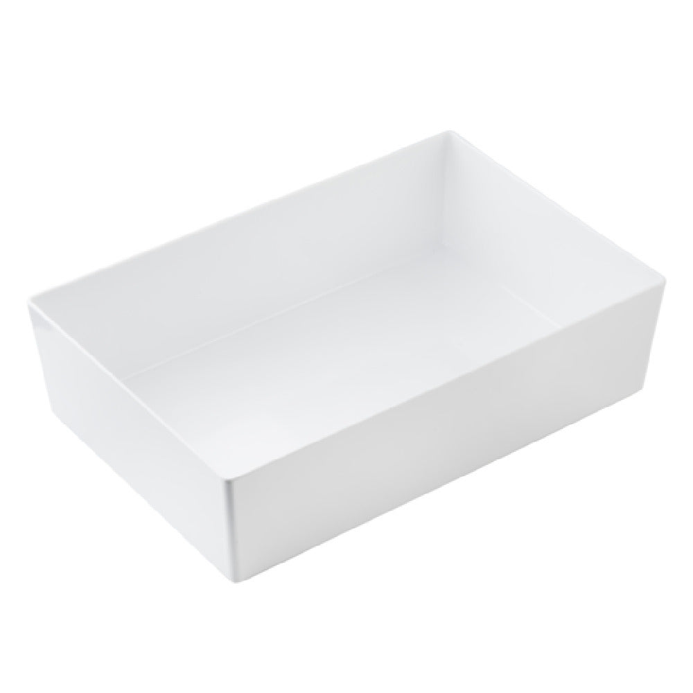 The Tablecraft 12111 Simple Solutions™ Bowl is a full-size, straight-sided serving solution with a generous capacity of 18.25 quarts, ideally suited for various culinary applications. Measuring 19 inches in length, 12.75 inches in width, and 5 inches in depth, its compact yet capacious design offers versatile usage across different environments. Constructed from durable melamine, this bowl combines the classic aesthetic of white with the functionality required in fast-paced settings, making it an essential choice for professional kitchens, catering services, and banquet halls. The lightweight yet sturdy material ensures both ease of handling and break-resistance, providing a reliable option for high-volume food service operations. Its straightforward, straight-sided design enhances accessibility and maximizes space, allowing efficient storage, serving, and presentation of a wide range of food items. The Tablecraft 12111 is also easy to clean, supporting hygiene maintenance in any service setting. With its blend of practicality and style, this bowl meets the diverse demands of industry professionals who value efficiency and quality in their serveware. Whether utilized in commercial dining establishments or for large-scale events, this bowl's robust construction and functional design deliver consistent performance and enduring value.