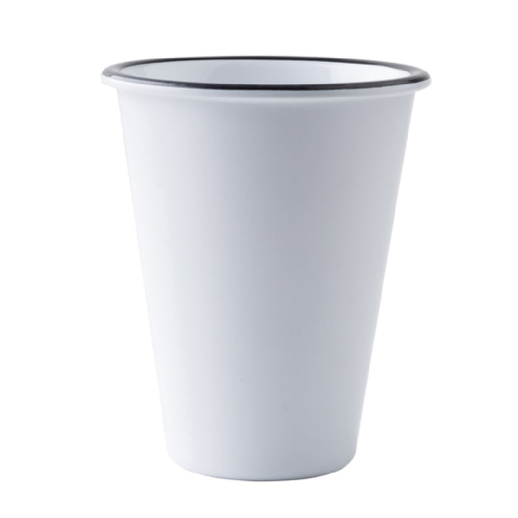 The Tablecraft 12167 Canteen Collection Tumbler is a meticulously crafted vessel, boasting a 16 oz. capacity, making it versatile for various beverage needs within the hospitality industry. With dimensions of 4 inches by 4 inches by 4.875 inches, it is designed to fit comfortably in hand while providing ample volume for an enjoyable drinking experience. Constructed from durable melamine, this tumbler is both lightweight and resilient, ensuring longevity in high-use environments such as restaurants, cafes, and catering services. The classic white and black color scheme enhances its aesthetic appeal, making it suitable for both casual and formal settings. The tumbler's melamine construction not only contributes to its robustness but also offers a safe, non-toxic alternative to traditional glassware, minimizing breakage risks and enhancing safety. The Tablecraft 12167 is part of the esteemed Canteen Collection, recognized for its blend of functionality and style, catering to the modern demands of the foodservice sector. Its practical design and reliable material make it an excellent choice for establishments seeking a balance of practicality and elegance in their tableware offerings, supporting a variety of market segments from casual diners to upscale eateries.