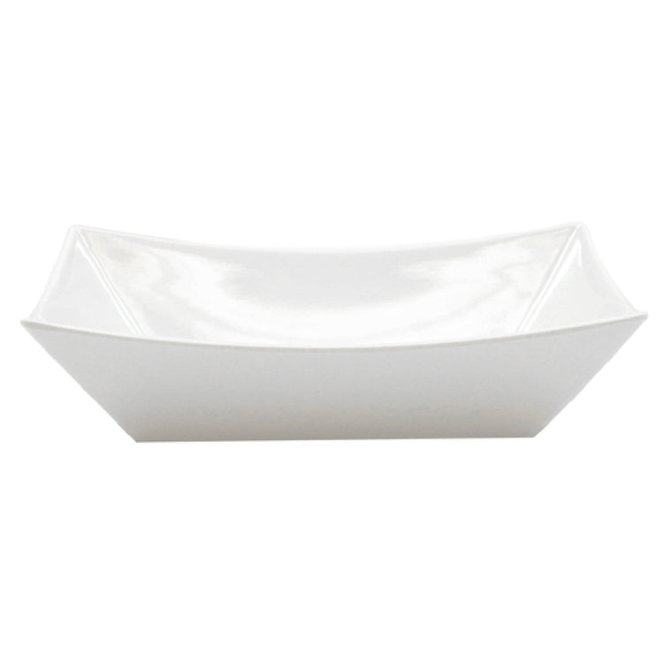 The Tablecraft 12350002 Better Burger Collection™ Fry Tray is a sizable and versatile serving solution with a 24 oz. capacity, measuring 8-1/2" x 5-3/4" x 1-7/8". Its large rectangular design makes it ideal for accommodating generous portions of fries or other side dishes, catering to both casual dining and upscale gourmet settings. Crafted from durable melamine, this tray boasts a pristine white finish that enhances the presentation of food while being resistant to stains and scratches. The melamine construction also ensures the tray is dishwasher safe, simplifying the cleaning process for busy kitchens. This makes it an excellent choice for restaurants, cafes, and food service establishments that prioritize both style and practicality in their serveware. Its robust design and functional size make it versatile for various market segments, from fast food joints to sophisticated bistros, offering a reliable and aesthetically pleasing option for presenting side dishes. The Tablecraft 12350002 Better Burger Collection™ Fry Tray embodies a blend of durability and elegance, making it an indispensable asset for any food service operation seeking to elevate their dining presentation while maintaining efficiency in their service routine.