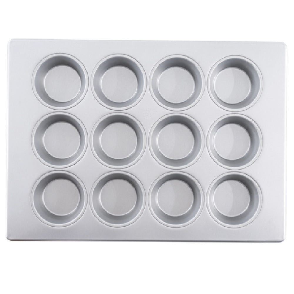 TableCraft Products, 12475, Large Muffin Pan, 18"x13"x1.25", steel (aluminized), 12 cups (3 rows of 4), silicone glazed non-stick coating