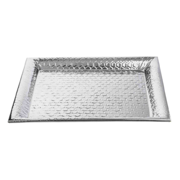 TableCraft Products, 12845, Hive Collection Serving Tray, square, 20-1/8" x 20-1/8" x 1-3/8"H, mirror/honeycomb pattern, stainless steel (18-8)