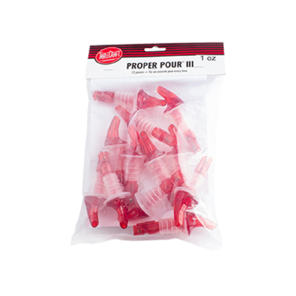 The Tablecraft 149A Cash & Carry Proper Pour™ III 1-1/4 Oz. No Collar is an innovative and essential tool for precise liquid distribution, crafted to meet the needs of various segments within the hospitality and beverage service industries. This product features a 1-1/4 oz. capacity, which is ideal for controlled and consistent pouring, making it particularly valuable in settings where accuracy is paramount. The absence of a collar allows for a streamlined design that is both practical and easy to handle. It is equipped with a red spout and a clear dip tube, enhancing both visibility and functionality during use. Constructed from plastic, it is lightweight yet durable, ensuring longevity and ease of maintenance. Additionally, the product is BPA-free, affirming its safety for use in food and beverage applications. The Tablecraft 149A is designed for hand wash only, which is important for maintaining its quality and performance over time. Packaged in a set of one dozen per polybag, this product offers convenience and efficiency for businesses requiring bulk purchases. Its thoughtful design and reliable construction make it a valuable asset in any bar, restaurant, or catering service focused on precision and customer satisfaction.