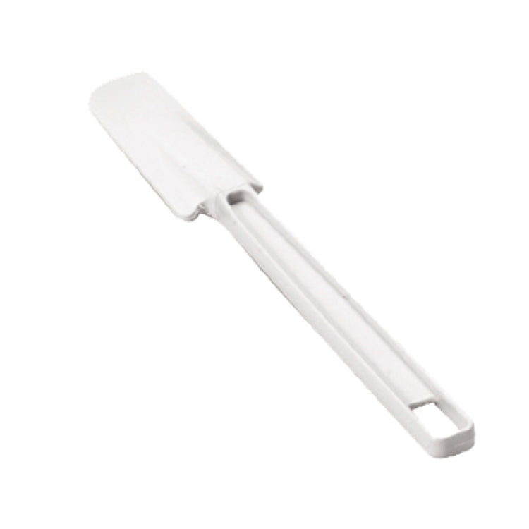 The Tablecraft 1500 Spatula - 9-1/2" Flat Shaped is an essential tool tailored for culinary professionals and home chefs who prioritize precision and durability. Measuring at 9-1/2 inches, this spatula is designed with a flat shape, offering excellent control for various cooking and baking tasks. It features a durable rubber blade that ensures both flexibility and stability, making it ideal for scraping, flipping, and spreading with ease. The white color adds a clean, professional aesthetic to your kitchen toolkit. Notably, the spatula is BPA free, aligning with modern health standards and ensuring safe contact with food. Its dishwasher-safe construction promotes hassle-free cleaning and maintenance, which is crucial for busy kitchens. The product is available for purchase in multiples of 24, making it a practical option for restaurants, catering businesses, and culinary schools in need of bulk orders. This combination of user-friendly design and professional-grade materials establishes the Tablecraft 1500 Spatula as a versatile and indispensable addition to any food service environment. Whether used in a bustling restaurant kitchen or a home baking station, this spatula provides reliable performance and unmatched convenience, catering to diverse needs within the culinary industry.