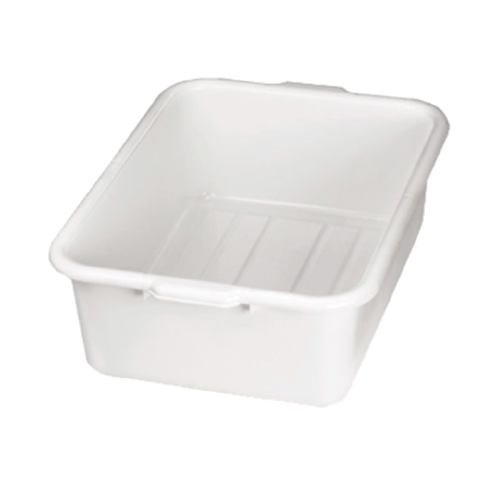 The Tablecraft 1537W Tote Box is a versatile storage solution, measuring 21-1/2 inches by 15-3/4 inches by 7 inches, designed to meet the diverse needs of various industry segments. With its pebbled finish outside, it not only offers a unique aesthetic but also enhances grip and durability. This tote box is crafted from high-density polyethylene, ensuring a robust structure that is both lightweight and resistant to impacts. It features reinforced handles, providing extra strength for secure handling even when fully loaded. The stackable design allows for efficient use of space, making it ideal for environments where storage optimization is critical. Furthermore, this tote box is dishwasher safe, facilitating easy cleaning and maintenance, which is essential in maintaining hygiene standards, especially in food-related industries. Proudly made in the USA, the Tablecraft 1537W Tote Box is FDA approved and NSF certified, guaranteeing compliance with stringent safety and health regulations. Its white finish adds a clean and professional look, making it a suitable choice for a variety of settings, from commercial kitchens to industrial storage facilities, where functionality and reliability are paramount.