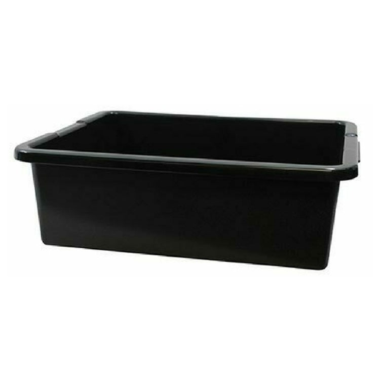 The Tablecraft 1557B Tote Box - 21" x 17" x 7" O.A. with reinforced handles is a versatile storage solution, designed to cater to the demanding needs of various industries. Constructed from high-density polyethylene, this tote box is engineered for durability, able to withstand the rigors of heavy-duty usage. The exterior features a pebbled finish, providing an enhanced grip and aesthetic appeal. Measuring 21 inches in length, 17 inches in width, and 7 inches in height overall (O.A.), the tote box is both spacious and conveniently sized for various storage applications. The reinforced handles offer robust support, ensuring ease of transportation even when fully loaded. This product is stackable, optimizing space utilization in storage environments. It is also dishwasher safe, facilitating effortless cleaning and maintenance routines. The Tablecraft 1557B Tote Box is black in color and meets FDA standards, ensuring safety in food-related applications. Certified by the NSF and proudly made in the USA, this tote box is a reliable choice for professionals across sectors such as food service, hospitality, and logistics. Note that this product must be purchased in multiples of six, accommodating bulk storage requirements efficiently.