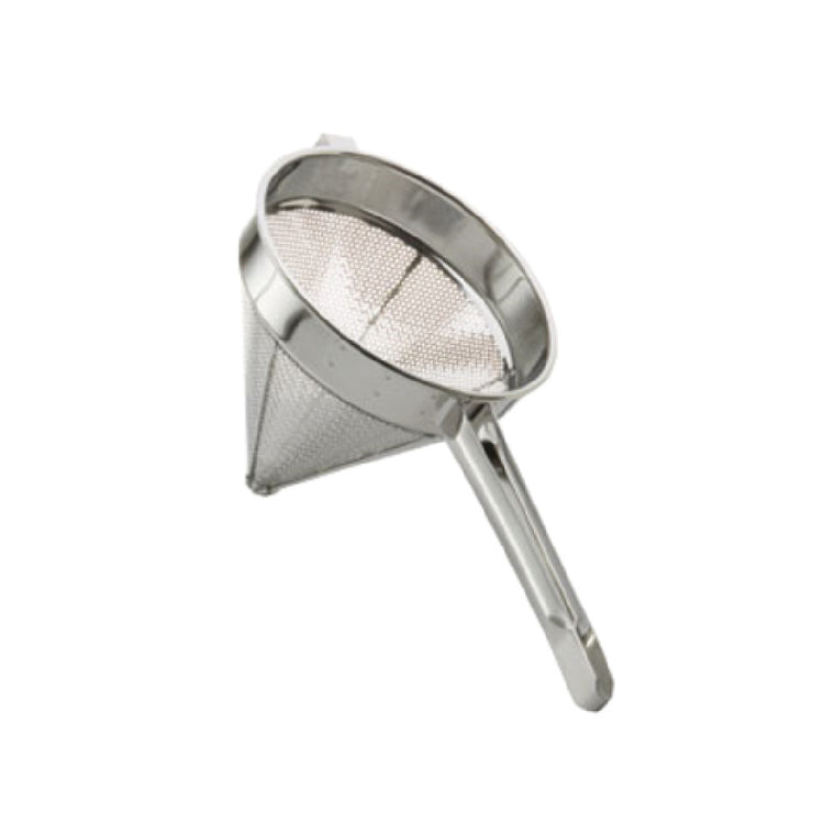The Tablecraft 1610 China Cap Strainer is a versatile kitchen tool characterized by its robust design and technical specifications, tailored for both professional and home chefs who require efficient straining solutions. With a generous 4-quart capacity, this strainer is suitable for a variety of culinary applications where volume and efficiency are paramount. Its 10-inch diameter provides ample surface area, facilitating the quick and effective separation of liquids from solids. The strainer's coarse mesh construction is ideal for tasks such as draining stocks or broths, where a finer sieve might be unnecessary. Assembled from 18/8 stainless steel, it embodies durability and resistance to corrosion, ensuring longevity even with frequent usage. The heavy-duty construction of the Tablecraft 1610 is complemented by its user-friendly design, as it is dishwasher safe, allowing for easy cleanup and maintenance. This product meets the rigorous demands of a commercial kitchen while also serving as a reliable tool for the culinary enthusiast at home. Its combination of size, material, and functionality marks the Tablecraft 1610 China Cap Strainer as a practical choice for those seeking a high-quality straining device, capable of standing up to the rigors of regular, demanding use in various food preparation settings.