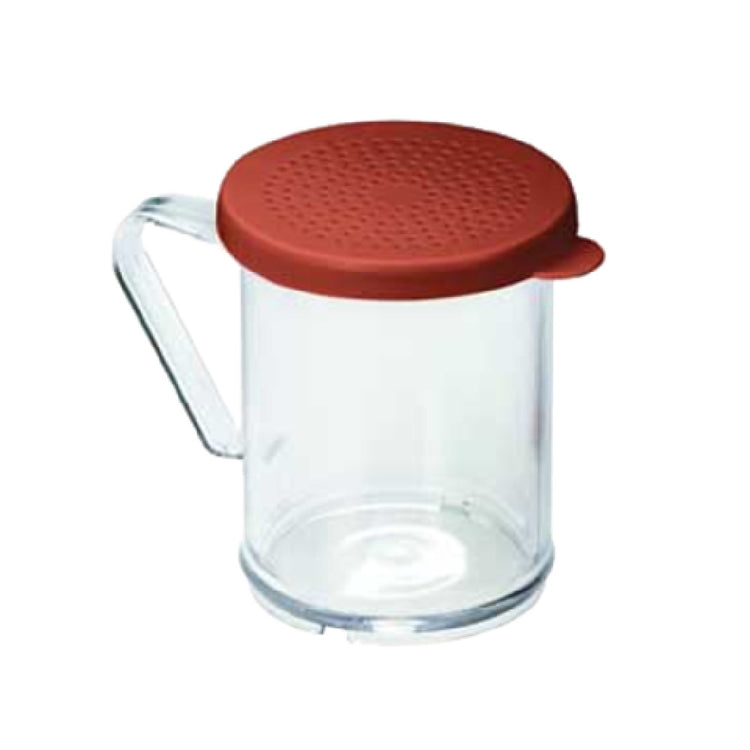 Tablecraft 166C Dredge/Shaker 10 Oz. is a versatile tool designed for medium ground spices, making it an essential addition to any culinary setting. With a capacity of 10 oz., this dredge/shaker is perfect for storing and dispensing spices efficiently. Crafted from durable poly material, it features a convenient handle for easy use. The rose snap-tight plastic lid ensures that contents remain secure and fresh, preventing spills and maintaining flavor integrity. Additionally, the product is dishwasher safe, simplifying the cleaning process and ensuring hygienic use. Proudly made in the USA, the Tablecraft 166C Dredge/Shaker is also BPA-free, reflecting a commitment to health and safety standards. The product's practical design and robust construction cater to a wide range of markets, from home kitchens to professional food service operations where precise seasoning is key. Its functionality and user-friendly features support efficient cooking processes, making it an indispensable tool for chefs and cooking enthusiasts alike.