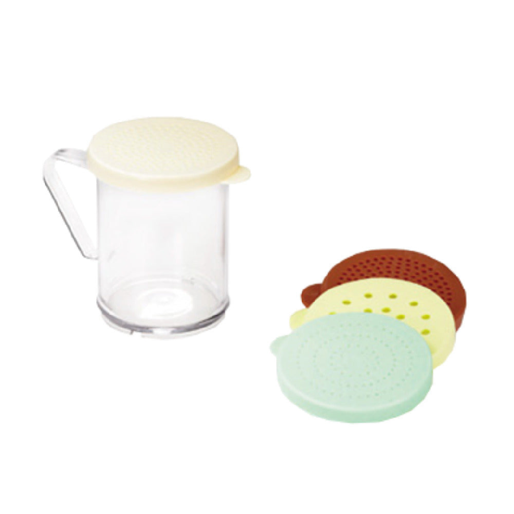 The Tablecraft 166F Dredge/Shaker Set 10 oz. Poly with Handle & 1 Each Beige is a versatile and essential tool for both professional kitchens and home cooking enthusiasts. This set features a 10-ounce capacity, ideal for storing and dispensing a variety of seasonings and dry ingredients. Each set includes three snap-tight plastic lids in beige, rose, and yellow, allowing for easy color-coded organization of different ingredients. Constructed from high-quality poly material, this dredge/shaker is designed with a convenient handle for easy gripping and maneuverability, enhancing user comfort during use. The product is BPA free, ensuring safety and peace of mind when used with food items. Furthermore, this dredge/shaker set is dishwasher safe, allowing for effortless cleaning and maintenance. Proudly made in the USA, the Tablecraft 166F Dredge/Shaker Set is a reliable choice for culinary professionals seeking durability and quality in their kitchen tools. Please note that this product must be purchased in multiples of 12 sets, ensuring an abundant supply for busy kitchens or culinary establishments. This set offers a practical solution for efficient ingredient management and seasoning applications across various food service sectors.