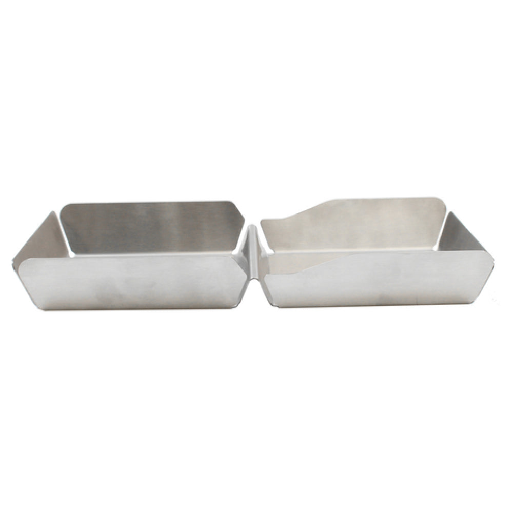 The Tablecraft 20003 Better Burger Collection™ Burger Box is a meticulously designed food serving solution, perfect for professional culinary environments and casual dining settings. With dimensions of 11-5/8 inches by 6-1/4 inches by 1-1/2 inches, it provides an ample and convenient serving area for various food items, specifically catering to the burger industry. Each of the two compartments measures 4-7/8 inches by 4-7/8 inches, accommodating up to 12 ounces of food per section, making it ideal for serving burgers and their accompaniments in a single, neat presentation. This burger box is crafted from durable stainless steel, ensuring longevity and resistance to everyday wear and tear in busy food service operations. Additionally, the product is dishwasher safe, allowing for effortless cleaning and maintenance, which is crucial in maintaining operational efficiency and hygiene standards in fast-paced restaurant environments. The Tablecraft 20003 Better Burger Collection™ Burger Box is a valuable addition for restaurateurs looking to streamline their service while maintaining a stylish presentation. Its robust construction and practical design meet the needs of various segment markets within the food service industry, providing a reliable and efficient serving option for any establishment looking to enhance their meal presentation.