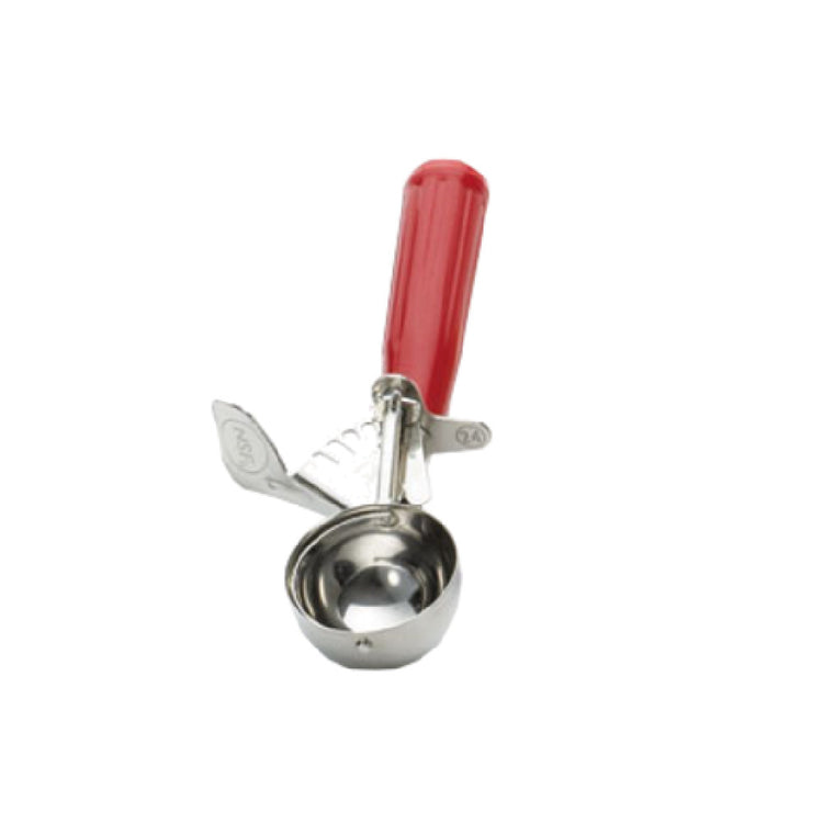 The Tablecraft 2124 Cash & Carry Disher Size 24 is a meticulously crafted tool designed to meet the diverse scooping needs of food service professionals. Boasting an impressive 1-1/2 oz. capacity, this disher is an exemplary piece of culinary equipment that promises precision and reliability in portion control. Measuring 8 inches in length, with a width of 3.125 inches and a height of 1.625 inches, it offers balanced handling and maneuverability, ideal for both back-of-house operations and front-of-house presentations. Constructed from durable 18/8 stainless steel, this disher is engineered for longevity, resisting rust and maintaining its sleek appearance even after extensive use. The red handle not only provides a comfortable grip but also assists in easy identification, enhancing operational efficiency in busy kitchen environments. As a testimony to its quality and safety, the Tablecraft 2124 is NSF certified, underscoring its compliance with stringent public health standards. Furthermore, its ability to withstand rigorous dishwasher cycles makes it a convenient addition to any commercial kitchen, where hygiene and ease of maintenance are paramount. For establishments prioritizing consistency in serving sizes and durability in kitchenware, this disher stands as a valuable asset that aligns with both culinary and operational excellence.