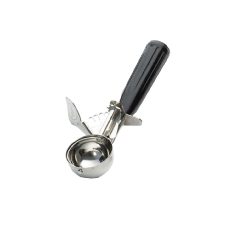 The Tablecraft 2130 Cash & Carry Disher is a versatile kitchen tool designed for precision and durability, ideal for professionals across various culinary settings. With a size 30 designation, it features a 1-1/4 oz. capacity, making it perfect for portion-controlled servings. Measuring 7.875 inches by 3.25 inches by 1.5 inches, this disher is compact yet effective, fitting seamlessly into any kitchen operation. Constructed from 18/8 stainless steel, it ensures long-lasting use while maintaining high resistance to corrosion and wear. The black handle not only provides a comfortable grip but also adds a sleek aesthetic touch. Dishwasher safe, the Tablecraft 2130 simplifies the cleaning process, enhancing kitchen efficiency. Individually boxed, it arrives ready for immediate use or easy storage. Its NSF certification signifies adherence to stringent health and safety standards, making it a reliable choice for environments where hygiene is paramount. From bustling restaurants needing consistent serving sizes to catering services requiring reliable equipment, this disher is engineered to meet diverse industry demands with precision and ease. Whether used for crafting perfect scoops of ice cream or allocating accurate portions of food, the Tablecraft 2130 Cash & Carry Disher stands out as a dependable tool for any culinary professional.