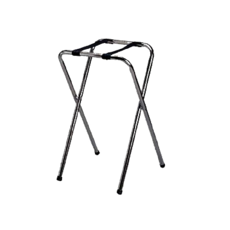 The Tablecraft 23 Tray Stand, with its 17-1/4" x 17-1/4" top and 29-3/4" height, is a versatile and durable solution designed for various service environments. Its chrome-plated finish not only adds a sleek, professional look but also ensures resilience against wear and tear. The tubular construction provides robust support, making it an ideal choice for busy restaurants, hotels, and catering events where reliability and strength are paramount. The single bar design of the tray stand allows for easy stacking and accessibility, enhancing efficiency in fast-paced settings. Tailored for the hospitality industry, this tray stand meets the demands of high-volume service with ease, offering a practical and stylish option for holding trays securely. Its compact dimensions make it space-efficient, yet it stands at a height that ensures comfortable access for staff. The Tablecraft 23 Tray Stand presents a perfect blend of functionality and aesthetic appeal, making it a valuable addition to any service-oriented business looking to maintain a high standard of presentation and operational efficiency.