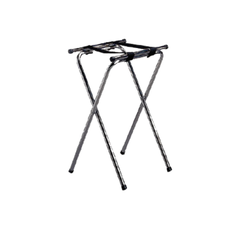 The Tablecraft 24 Tray Stand 18-1/4" X 16-1/2" Top 31-3/4" H is an essential piece of equipment for hospitality and food service industries, offering a robust solution for tray organization and accessibility. Featuring a top dimension of 18-1/4 inches by 16-1/2 inches, this stand is engineered to accommodate a variety of tray sizes, making it versatile for different service settings. With a height of 31-3/4 inches, it ensures easy reach and optimal utility in fast-paced environments. The chrome-plated finish not only adds a sleek, professional appearance but also enhances durability by resisting corrosion over time. Constructed from tubular materials, this tray stand offers a lightweight yet sturdy framework, capable of withstanding regular use in bustling service areas. The double bar design provides additional reinforcement and stability, ensuring trays remain secure and easily accessible. Its practical design serves a broad market range—from restaurants and hotels to catering events—where efficient tray management is pivotal. The Tablecraft 24 Tray Stand stands out with its combination of durability, functionality, and aesthetic appeal, making it a valuable tool for enhancing service efficiency and organization in any professional setting.