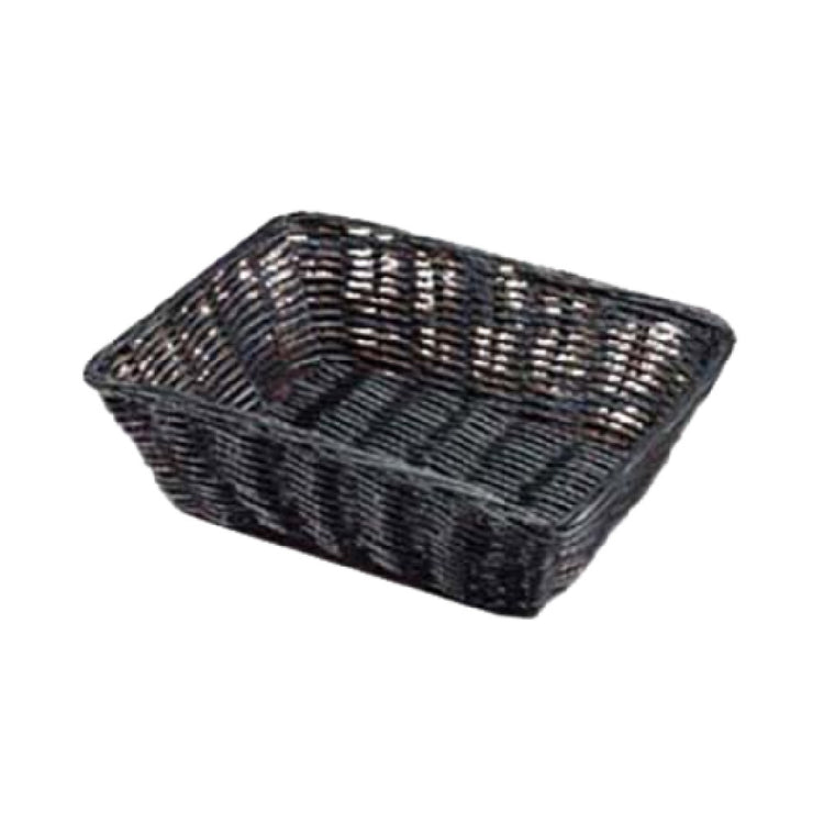 The Tablecraft 2472 Basket 9" X 6" X 2-1/2" offers a blend of practicality and elegance that caters to diverse market segments, from hospitality to retail. This rectangular basket is meticulously hand-woven using high-quality polypropylene cord, ensuring durability and resilience in various settings. Measuring 9 inches in length, 6 inches in width, and 2-1/2 inches in height, it presents an ideal solution for organizing and presenting items in a space-efficient manner. Its sleek black color seamlessly complements any decor, making it a versatile choice for restaurant tables, buffet setups, or retail displays. The use of polypropylene cord not only enhances the basket's strength but also makes it easy to clean and maintain, ensuring longevity and reliability in demanding environments. The Tablecraft 2472 Basket stands out as a functional and aesthetic option for those seeking a robust, stylish, and versatile storage solution within the food service and retail industries. Its hand-woven design adds a touch of craftsmanship, elevating the presentation of items, whether it's in a rustic bistro, a modern café, or a chic retail store.