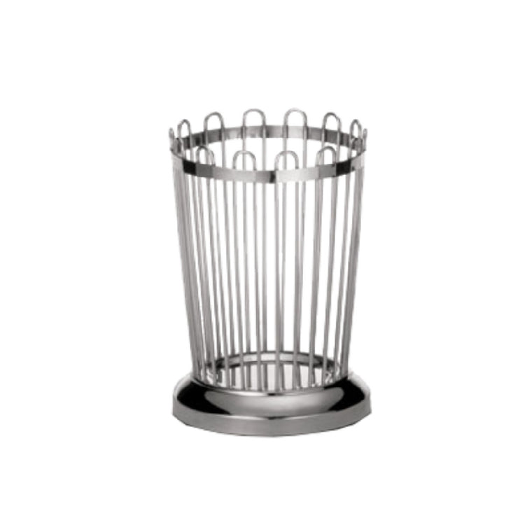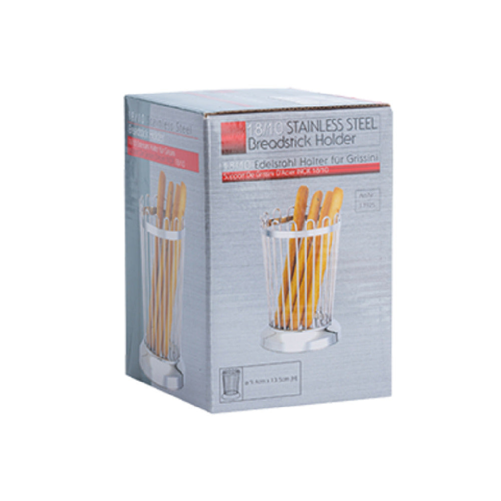 The Tablecraft 258 Cash & Carry Regent Bread Stick Holder is meticulously crafted to combine both functionality and elegance in its design. With dimensions of 3-3/4 inches in diameter and 5-3/8 inches in height, this round holder is perfectly suited for a variety of dining settings, from casual eateries to upscale restaurants. Constructed from 18/8 stainless steel, it promises durability and a sleek, modern appearance that complements any table setting. Its hand wash only specification ensures that the quality of the stainless steel is maintained, providing a long-lasting product life. Each holder is individually boxed, ensuring its pristine condition upon delivery and making it an excellent choice for retail environments. This bread stick holder not only serves as a practical solution for presenting breadsticks but also enhances the dining experience with its attractive design. Ideal for food service establishments looking to elevate their table presentation, the Tablecraft 258 offers a reliable and aesthetically pleasing option for showcasing breadsticks. Its robust construction and thoughtful design make it a valuable addition to any commercial dining operation seeking to deliver a memorable dining experience.