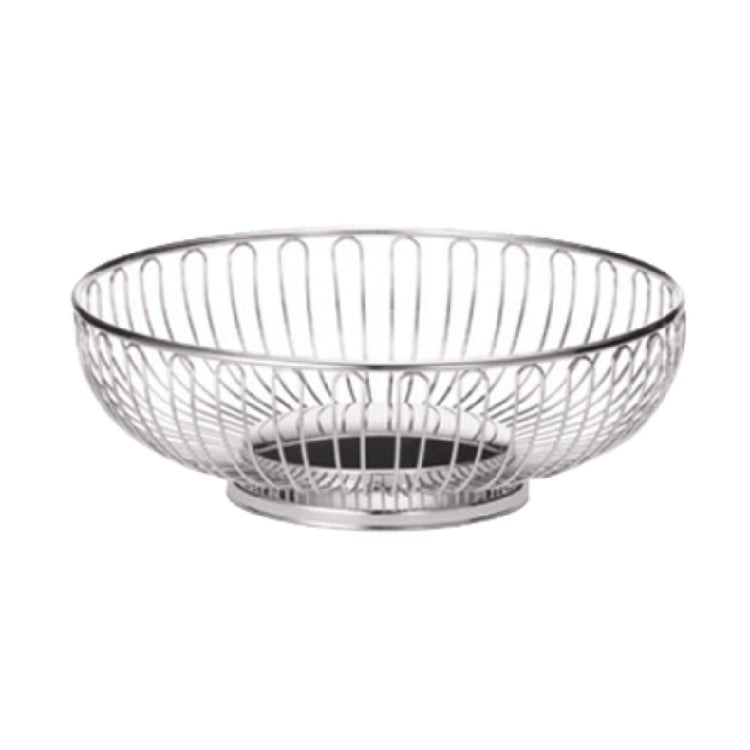 The Tablecraft 4174 Cash & Carry Chalet Basket is an oval-shaped serving essential measuring 9 inches by 6-1/2 inches by 2-3/4 inches, tailored for versatility across various hospitality sectors. Known for its chrome-plated finish, this basket adds a touch of elegance to table presentations, making it a preferred choice for restaurants and catering services aiming to enhance their service aesthetics. While its stylish design is eye-catching, the practical aspect of being "hand wash only" ensures that maintenance is straightforward, preserving its quality and shine over time. Each basket is individually boxed, catering to retail environments looking for convenient storage and display solutions. Whether used for serving bread, snacks, or side dishes, the Tablecraft 4174 Basket serves as a functional and decorative piece, bridging the gap between practicality and style within the food service industry. Its dimensions are particularly well-suited for individual or shared servings, making it a versatile choice for diverse dining settings. This product exemplifies Tablecraft's commitment to providing high-quality serving solutions that cater to the unique demands of different market segments, from upscale dining establishments to casual eateries, all while ensuring a refined presentation.