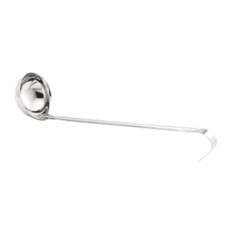 The Tablecraft 4702 Ladle - 2 Oz. 12" Handle is a highly efficient and durable kitchen tool designed for various culinary environments. Crafted from stainless steel, this one-piece ladle is both robust and reliable, ensuring longevity and resistance to corrosion. Its 2-ounce capacity is perfectly suited for precise portion control, making it invaluable for both home cooking enthusiasts and professional chefs who require accuracy in serving soups, sauces, and dressings. The 12-inch handle provides optimal reach and comfort, ensuring ease of use even in large pots or deep containers. This feature enhances its versatility, making it an ideal choice for catering services, restaurants, and institutional kitchens where efficiency and hygiene are paramount. The ladle is dishwasher safe, ensuring effortless cleaning and maintenance, which is particularly beneficial in high-volume kitchen settings. By combining functionality with ease of care, the Tablecraft 4702 Ladle represents a valuable asset for food service operations, enhancing operational efficiency while maintaining high standards of quality and performance.