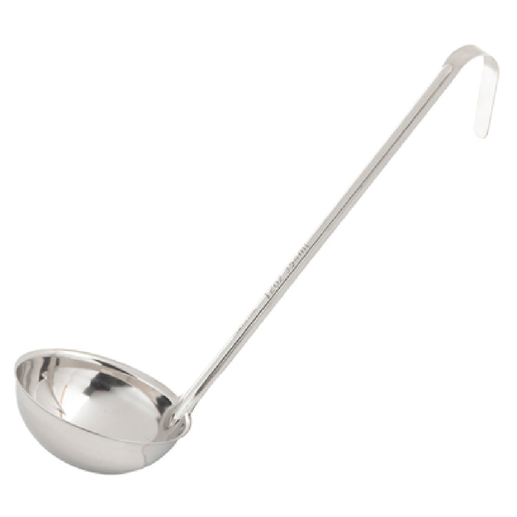 The Tablecraft 4712 Ladle 12 Oz. 15-1/2"L Overall is a precision-crafted utensil designed to meet the needs of professional kitchens and culinary enthusiasts alike. This ladle boasts a generous 12-ounce capacity, making it ideal for serving soups, stews, and sauces with efficiency and ease. The one-piece construction enhances its durability, ensuring long-lasting performance even in the busiest kitchen environments. At 15-1/2 inches in overall length, this ladle provides ample reach, while the 12-inch handle offers a comfortable grip for effortless handling and maneuverability. Crafted from high-quality stainless steel, the Tablecraft 4712 Ladle combines both form and function, offering resistance to corrosion and staining, which is crucial for maintaining hygiene and appearance over time. Its sleek design allows it to seamlessly integrate into both commercial and domestic kitchens, catering to different segment markets by providing a reliable and aesthetically pleasing serving tool. Whether used in a bustling restaurant kitchen or a home setting, the Tablecraft 4712 Ladle 12 Oz. 15-1/2"L Overall stands out as a versatile and essential kitchen implement that professionals and home cooks can depend on for its superior performance and enduring quality.