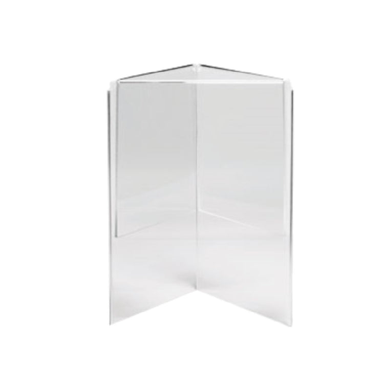The Tablecraft 50703 Menu Holder, measuring 5-1/4" x 5-1/4" x 7-1/4", is a versatile three-sided display solution crafted from clear, durable acrylic. This product is dishwasher safe, ensuring easy maintenance and longevity in various environments. Its unique three-sided design maximizes visibility and accessibility, making it an ideal choice for restaurants, cafes, and other hospitality venues seeking to showcase menus, promotional materials, or special announcements. The compact dimensions of 5-1/4" on each side, paired with a height of 7-1/4", provide a balanced combination of presence and subtlety, fitting seamlessly into diverse tabletop settings without overwhelming the space. The clear acrylic construction not only offers a sleek and modern aesthetic but also ensures that the inserted materials remain the focal point, unhindered by the holder. This product's compatibility with dishwashers underscores its practicality for high-traffic settings, where efficiency and cleanliness are paramount. Whether used for displaying daily specials or seasonal offers, the Tablecraft 50703 Menu Holder's thoughtful design caters to the needs of the foodservice industry, providing a reliable and attractive means of communication with customers.