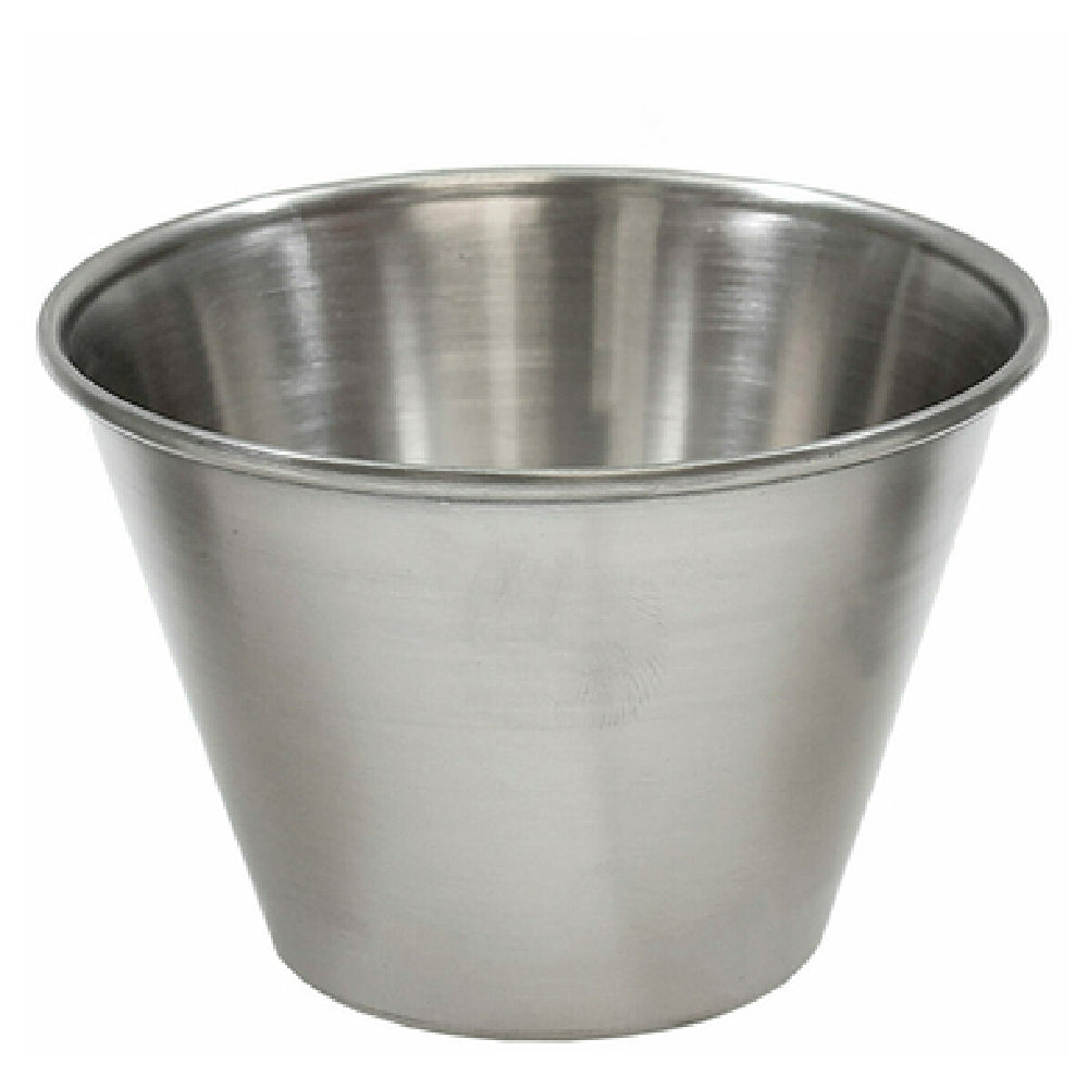 The Tablecraft 5072 Sauce Cup 4 Oz. is a versatile and durable addition to any dining or kitchen setup, catering to a wide range of market segments from home kitchens to professional culinary environments. Crafted from high-quality stainless steel, this sauce cup ensures longevity and resistance to wear, making it an economical choice for restaurants, hotels, and catering services that require reliable serving solutions. With a 4 oz. capacity, it is perfectly sized for serving individual portions of sauces, dips, or condiments, providing both functionality and style in presentation. The product's dishwasher-safe feature enhances its practicality, offering ease of cleaning which is essential for maintaining high standards of hygiene, particularly in fast-paced service settings. Available with a minimum order of 12 each, it allows establishments to efficiently manage inventory and ensure consistency in table service. The Tablecraft 5072 Sauce Cup seamlessly combines utility with elegance, making it suitable for both casual and fine dining experiences, as well as catering large events where uniformity and quality are paramount. Its robust construction and sleek design allow it to fit seamlessly into various culinary applications, proving it to be a valuable asset in any food service operation.