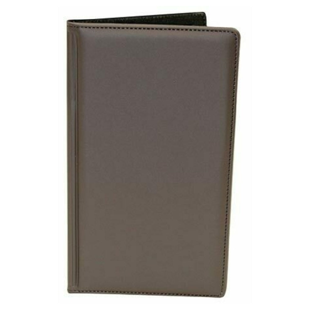 The Tablecraft 59BR Check Presentation Holder - 5-1/4" x 9" - embodies a functional and aesthetically pleasing solution for businesses in the hospitality and dining industry. Crafted from a resilient 14 point vinyl, this two-fold holder features a sewn border for enhanced durability, ensuring longevity in high-use environments. The exterior showcases an elegant brown finish, accentuated by a gold imprinted "Thank You" message, adding a touch of sophistication to any restaurant or café setting. Although the order pad is not included, its compact dimensions of 5-1/4 inches by 9 inches make it a versatile accessory, suitable for various table settings and service styles. This check presentation holder is designed to streamline the payment process, enhancing the overall customer experience by marrying practicality with style. From upscale dining establishments to casual eateries, the Tablecraft 59BR Check Presentation Holder serves as an essential tool in facilitating seamless transactions, while simultaneously conveying gratitude to patrons. Its thoughtful design and professional appearance make it an indispensable component for servers and staff, contributing to efficient operations and customer satisfaction in diverse dining environments.