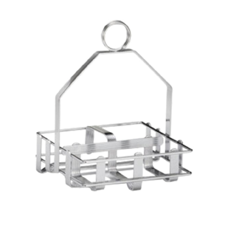 The Tablecraft 609R Condiment Rack is designed to accommodate salt and pepper shakers with a diameter of up to 2-1/8 inches, making it an efficient solution for organizing dining essentials. Featuring a packet opening, it offers an additional space for condiments such as sugar or sauce packets, enhancing its utility in various dining settings. The built-in merchandising ring is a standout feature, allowing for the easy display of promotional materials or branding, thus boosting its appeal for restaurant chains and cafes focusing on brand visibility. This condiment rack is chrome plated, ensuring a sleek, modern appearance that complements any tabletop decor while also providing durability and resistance to corrosion. It is available for purchase in multiples of six, catering to the bulk purchasing needs of large dining establishments or catering services. This product is ideal for restaurants, cafes, and catering operations seeking a reliable, aesthetically pleasing solution to condiment organization and display. The technical design, with its specific focus on accommodating shakers of a particular size, ensures it meets the precise needs of professional dining environments, while the chrome finish provides both durability and an appealing visual touch.
