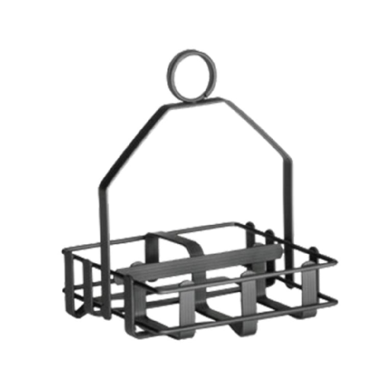 The Tablecraft 609RBK Condiment Rack is designed exclusively for accommodating salt and pepper shakers with a diameter of up to 2-1/8 inches, making it an essential accessory for streamlined table organization in various dining settings. This condiment rack is crafted from black powder-coated metal, ensuring durability and a sleek, modern appearance that seamlessly complements any decor. It features a packet opening, allowing for the convenient inclusion of additional condiments or packets, enhancing its utility for restaurant and catering environments. The built-in merchandising ring provides an opportunity for branding or promotional materials, adding a layer of customization for establishments seeking to elevate their table presentation. This product is intended for hand wash only, ensuring its longevity and maintaining its pristine appearance. The Tablecraft 609RBK Condiment Rack must be purchased in multiples of six, catering to bulk procurement needs of larger dining establishments, such as restaurants, cafes, or event venues. Its practical design and robust construction make it an indispensable tool for efficiently managing condiments, helping to maintain an organized and professional dining table setup. The Tablecraft 609RBK Condiment Rack provides an effective solution for food service providers seeking both functionality and aesthetic appeal in their condiment management systems.