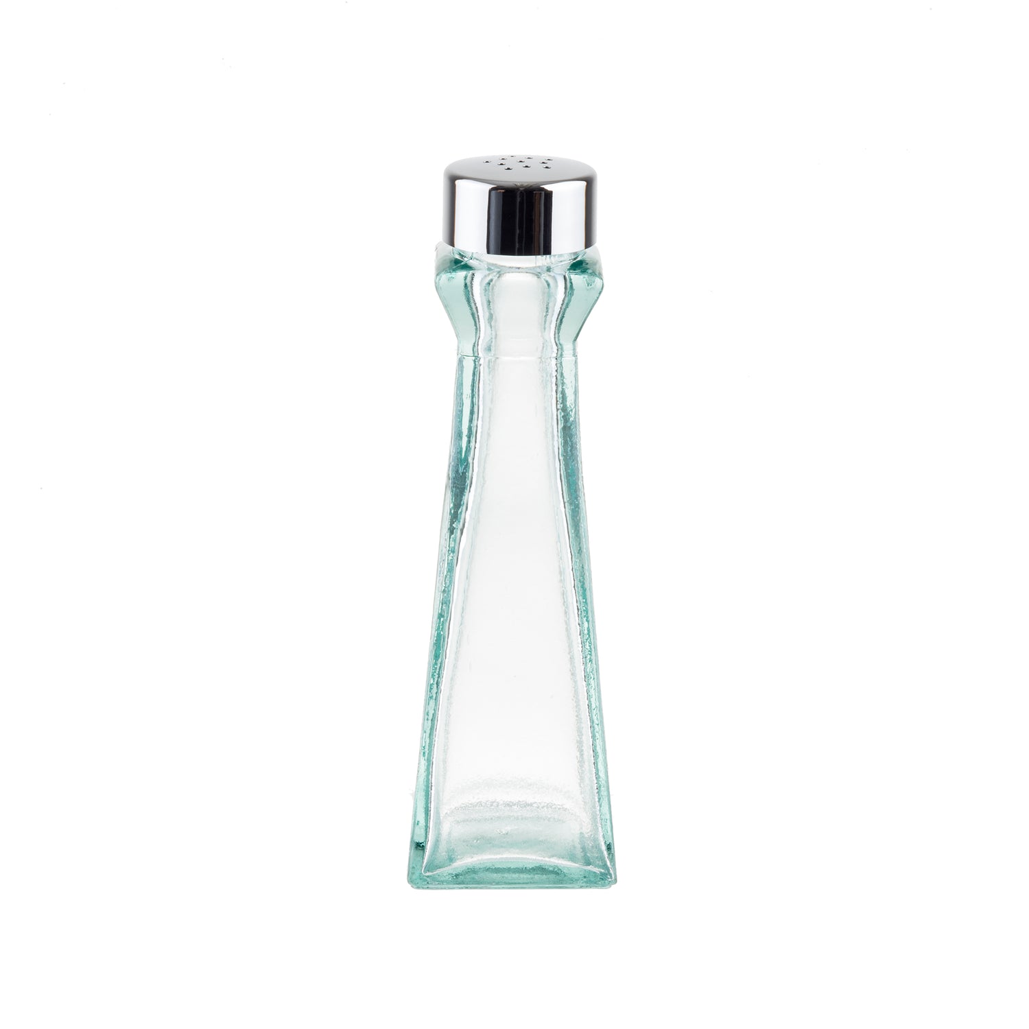 The Tablecraft 615 Marbella™ Shaker - 3 Oz. Recycled Green Tint Glass Shaker is a unique addition to any dining setting, combining sustainability with style. Each shaker is crafted from 3 oz. recycled green tint glass, offering an eco-friendly choice for environmentally-conscious consumers. This shaker is designed to be dishwasher safe, ensuring convenience and ease of maintenance for busy eateries and home kitchens alike. The chrome-plated ABS top adds a touch of elegance and durability, though it requires hand washing to maintain their lustrous finish. Ideal for large-scale operations, this shaker must be purchased in multiples of 24, making them a practical option for restaurants, cafes, and catering services looking to equip their spaces efficiently. The Tablecraft 615 Marbella™ Shaker is not only functional but also aesthetically pleasing, offering a subtle green hue that complements a variety of table settings. With their combination of recycled materials and user-friendly design, this shaker presents a responsible and stylish choice for food service professionals and home users who value both practicality and environmental sustainability.