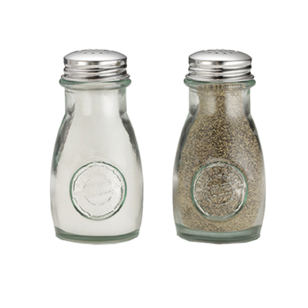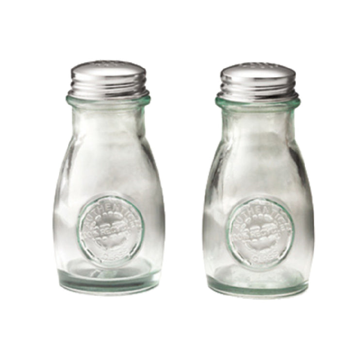 Tablecraft 6618 Authentic Collection™ Shaker Set (2) 4 Oz. Recycled Green Tint Glass Jars (dishwasher Safe)