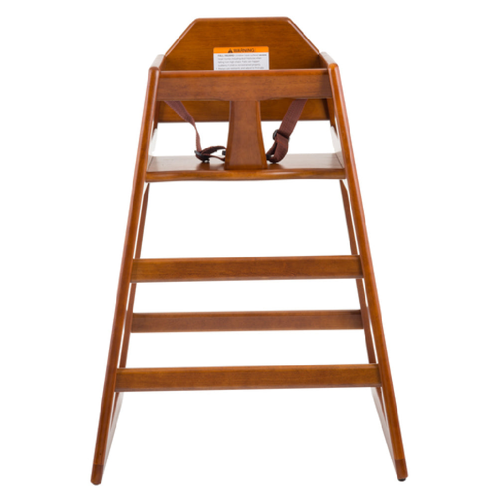 The Tablecraft 6666063 High Chair is a meticulously designed seating solution measuring 19-3/4" x 19-3/4" x 29"H, ideal for establishments prioritizing both functionality and safety. Crafted from durable rubberwood with an elegant walnut finish, it seamlessly integrates into various decor styles. This high chair features a washable and replaceable 3-point seatbelt, combined with a front passive restraint, ensuring enhanced safety for the youngest patrons. Its stackable design offers an efficient storage solution, making it an excellent choice for busy restaurants, cafes, and family-oriented venues with fluctuating seating demands. The chair's compliance with ASTM F404-18 standards underscores its commitment to safety and quality. Although unassembled, it allows for easy transport and storage prior to setup, offering flexibility to catering businesses and event venues. The Tablecraft 6666063 High Chair stands out as a reliable and versatile option, providing both comfort and security while optimizing space utilization in hospitality settings.