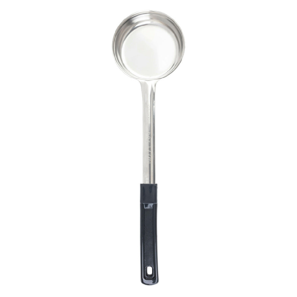 TableCraft 6706 Spoonout 6 Oz. One-piece is a practical kitchen tool designed for efficiency and durability, ideal for various culinary environments. This spoon features a solid construction, highlighting its one-piece design which ensures both strength and ease of cleaning, minimizing any risk of bacteria buildup. Manufactured with a stainless steel body, the spoon is resistant to corrosion and maintains its integrity even after prolonged use. The black handle not only offers a sleek aesthetic but also provides a comfortable grip for effortless serving. With a capacity of 6 ounces, this utensil is suitable for precise portion control, making it a valuable asset for commercial kitchens, catering services, and home chefs alike. Its dishwasher-safe quality further enhances its practicality, allowing for convenient and thorough cleaning after use. Whether used in a high-paced restaurant setting or a home kitchen, the TableCraft 6706 Spoonout embodies reliability and functionality. Its streamlined design and durable construction cater to the needs of professionals who prioritize both quality and efficiency in their kitchen tools.