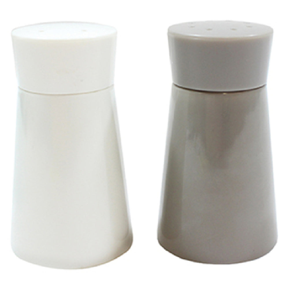 The Tablecraft 700019 Salt & Pepper Shaker Set 1/2 Oz. 2-3/4"H is a compact and practical accessory for various dining environments, from casual family dinners to bustling restaurants. The set includes shakers with a capacity of 1/2 ounce, each standing at 2-3/4 inches high, making them ideal for tabletop use without occupying excessive space. Crafted with a melamine body, these shakers offer both durability and a classic aesthetic, suitable for both contemporary and traditional settings. The white and gray color scheme adds a touch of elegance while complementing diverse tableware styles. Each shaker is topped with a plastic lid, ensuring easy dispensing of salt and pepper while maintaining freshness. These shakers must be purchased in multiples of 6 sets, catering to larger establishments or bulk purchasing needs. This practical arrangement is particularly beneficial for restaurants, catering services, and hospitality businesses that require consistent and reliable tabletop accessories. The Tablecraft 700019 Salt & Pepper Shaker Set stands out with its blend of style, function, and convenience, meeting the diverse needs of users across the food service industry, and adding a refined touch to the dining experience.