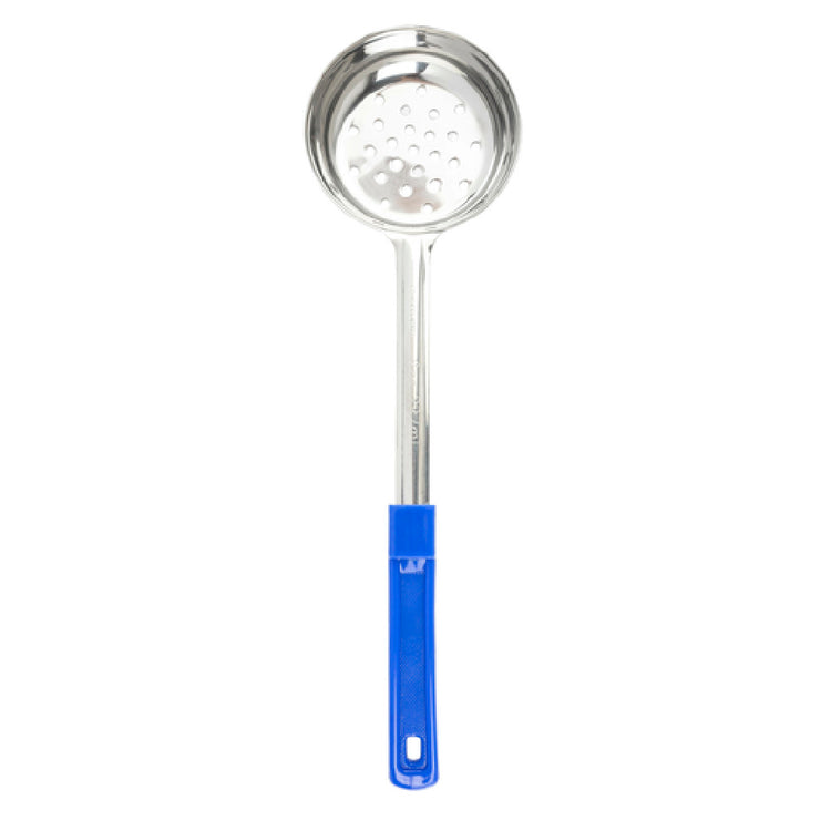 The Tablecraft 7708 Spoonout 8 Oz. One-piece is a versatile kitchen tool designed for both professional chefs and home cooks who demand precision and durability. This single-piece utensil is crafted from high-quality stainless steel, ensuring longevity and resistance to wear and tear. Its 8 oz. capacity is perfect for serving or portioning a variety of foods, making it a valuable addition to any kitchen setup. The perforated design is particularly useful for draining excess liquids from dishes, enhancing its functionality in diverse culinary applications. The blue handle not only adds a pop of color for easy identification but also provides a comfortable grip that is dishwasher safe, ensuring effortless cleaning and maintenance. This spoonout balances practicality and aesthetic appeal, making it suitable for both commercial and residential kitchens. The one-piece construction minimizes potential break points, offering superior hygiene and ease of use. Whether you're in a high-paced restaurant environment or cooking a family meal at home, the Tablecraft 7708 Spoonout delivers reliable performance every time.