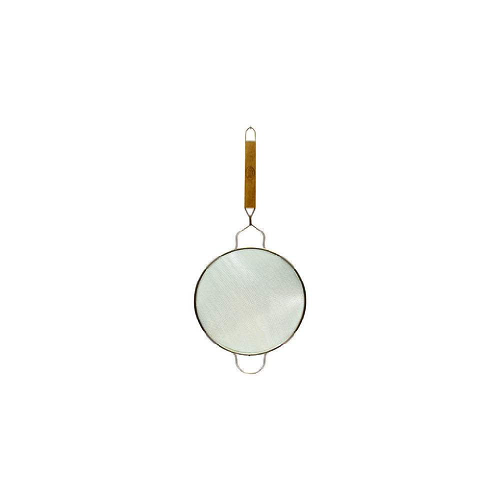 The TableCraft 87 Strainer 10-1/4" Dia. Double Fine Mesh is an essential kitchen gadget designed for culinary professionals and home chefs alike who require precision in their cooking processes. This strainer features a double fine mesh that ensures thorough and efficient sifting, making it ideal for a range of tasks, from rinsing grains to straining sauces. With a diameter of 10-1/4 inches, it offers a substantial surface area, facilitating quick and effective work in both commercial and domestic settings. The strainer is tinned, providing durability and resistance to corrosion, which is essential for maintaining hygiene and performance standards in food preparation environments. It is equipped with a sturdy wooden handle that allows for a comfortable grip, reducing hand fatigue during extended use. One important note is that this piece is intended for hand wash only, ensuring its longevity and maintaining the quality of its materials. The TableCraft 87 Strainer is a versatile tool that meets the diverse needs of food service industries, offering reliability and efficiency for professionals who demand precision and quality in their kitchen tools.