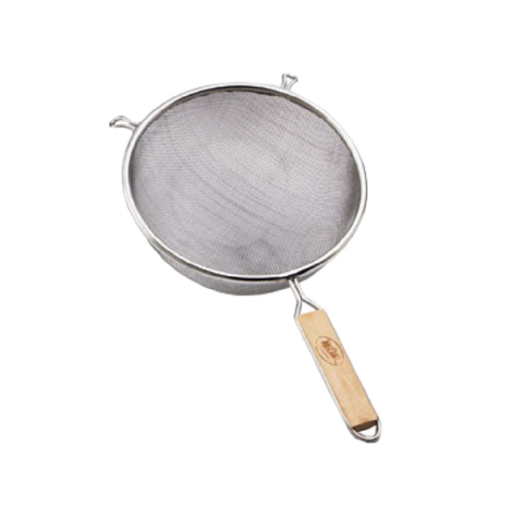 The Tablecraft 90 Strainer 4-3/4" Dia. Single Fine Mesh is a meticulously crafted tool designed for precision and durability, catering to both culinary professionals and home cooking enthusiasts. With a diameter of 4-3/4 inches, this strainer is ideal for a range of food preparation tasks, providing excellent filtration through its single fine mesh. The strainer is designed with a hand wash only requirement, ensuring longevity when properly maintained. The tinned finish provides a layer of protection against corrosion, enhancing its robustness for frequent use in busy kitchen environments. Its wooden handle not only offers a comfortable grip but also adds an element of traditional craftsmanship to its design. This versatile strainer is suitable for a variety of markets within the culinary industry, including restaurants, cafes, and catering services, where its fine mesh is perfect for straining broths, sauces, or sifting dry ingredients. The Tablecraft 90 Strainer balances utility and style, making it an indispensable tool for achieving culinary perfection with ease and precision. Its combination of practical features and durable construction ensures it meets the demanding needs of professional kitchens, while also being a valuable addition to any home cook's collection.