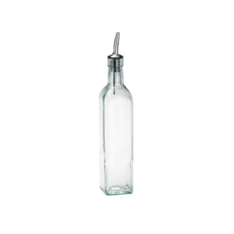 The Tablecraft 916 Prima™ Bottle 16 Oz. Square is a meticulously crafted green tinted glass bottle, offering a sleek and modern solution for various culinary and hospitality settings. With its distinctive square shape, this 16-ounce capacity bottle provides both aesthetic appeal and practical utility, making it suitable for a range of applications including oil, vinegar, and other liquid storage and dispensing needs. The durable glass construction ensures long-lasting use while being dishwasher safe, providing ease of maintenance for busy environments. Complementing the bottle's design is a stainless steel pourer, which offers precise and controlled pouring. However, it is important to note that the pourer is recommended for hand wash only, ensuring its longevity and performance. This product's combination of functionality and style makes it an excellent choice for restaurants, cafes, and home kitchens seeking to elevate their dining experience. The Tablecraft 916 Prima™ Bottle stands out in its category, blending form and function to deliver a reliable and stylish container that meets the demands of both professional and domestic settings.