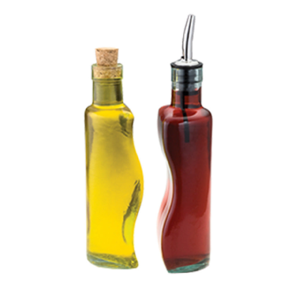 Tablecraft 918 Gemelli™ Bottle Set (2) 8-1/2 Oz. Embracing Green Tinted Glass Bottles (dishwasher Safe) - 6/Set
