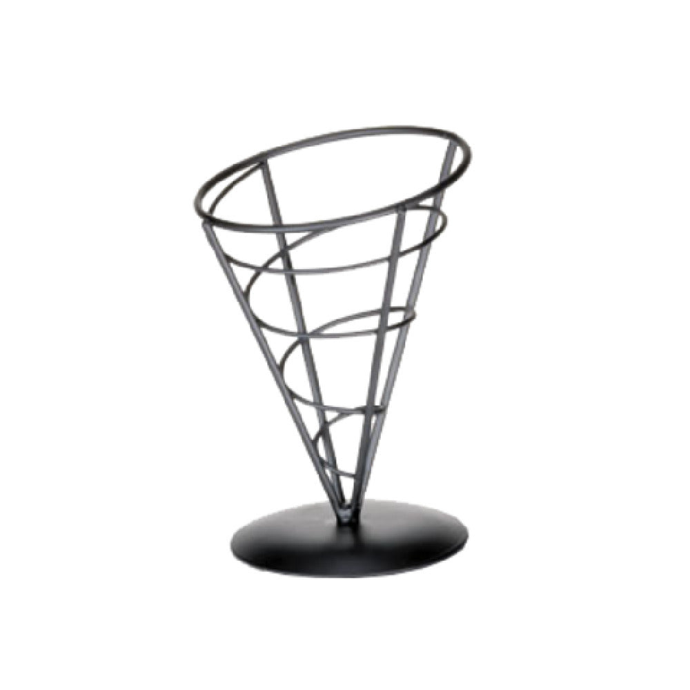 The Tablecraft AC57 Vertigo Collection™ Appetizer Cone 5" x 7" Hand Wash Only is a meticulously crafted piece, ideal for professional food service settings that emphasize presentation and functionality. Designed with a compact dimension of 5 inches by 7 inches, this appetizer cone is part of the distinguished Vertigo Collection™ and is made from black powder coated metal, ensuring both durability and a sleek appearance. Its striking design makes it a perfect fit for upscale dining establishments, catering events, or trendy cafes that aim to enhance the visual appeal of their appetizer presentations. The emphasis on hand wash-only care highlights its crafted finish and the attention to detail required for maintenance, ensuring longevity in use. This product is particularly valuable for market segments that prioritize aesthetic presentation in dining experiences while maintaining practical aspects of serving. Its unique structure offers a modern twist on traditional serving methods, providing a sophisticated platform for displaying a variety of appetizers. The Tablecraft AC57 allows for creative culinary expressions, making it a cherished asset for chefs and food artisans who seek to impress with their plating skills while adhering to high standards of dining aesthetics.