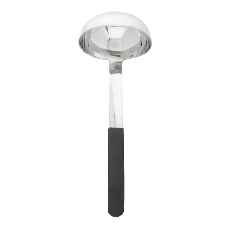 The Tablecraft AM5306BK Antimicrobial Ladle is a precision-engineered kitchen tool tailored for versatile culinary applications. Designed with a capacity of 6 ounces, this ladle is crafted to cater to the needs of different segment markets, from commercial kitchens to home use. The ladle's dimensions are 4 inches by 3-1/2 inches by 10-5/8 inches, ensuring a balance of capacity and ease of handling. Constructed from 18-0 stainless steel, the AM5306BK ladle provides durability and resistance to corrosion, making it suitable for frequent use in various environments. The black handle not only enhances its aesthetic appeal but also offers an ergonomic grip for comfort during prolonged use. A key distinguishing feature of this ladle is its antimicrobial properties, which help to reduce the risk of cross-contamination, thereby supporting high standards of hygiene in food preparation. This feature is particularly valuable in environments where sanitation is a priority. Additionally, the ladle is dishwasher safe, ensuring convenient cleaning and maintenance. The Tablecraft AM5306BK Antimicrobial Ladle exemplifies a blend of functionality, safety, and durability, making it an essential tool for professionals and home cooks alike who prioritize quality and hygiene in their kitchen utensils.